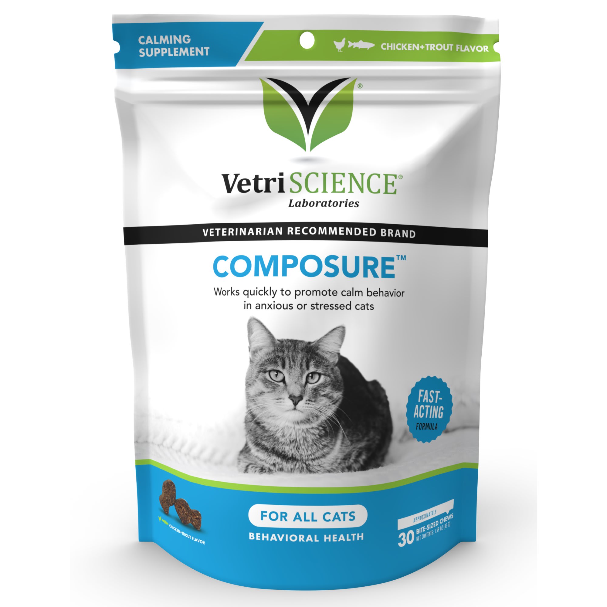 Vetriscience Composure Behavioral Health Bite Sized Trout Flavor Cat Chews Count Of 30 Petco